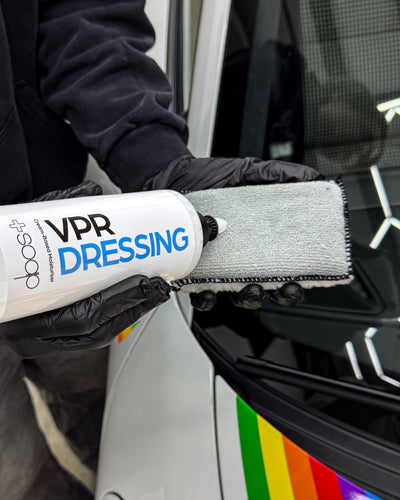 Apply a small amount of VPR Dressing onto a foam or microfiber applicator. Spread evenly across the surface, ensuring full coverage without overapplying.
